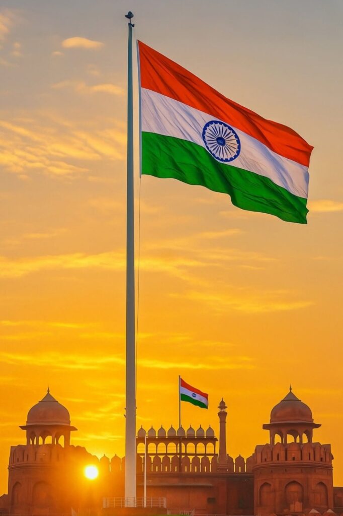 लाल किले मे फहराता हुआ तिरंगा झंडा